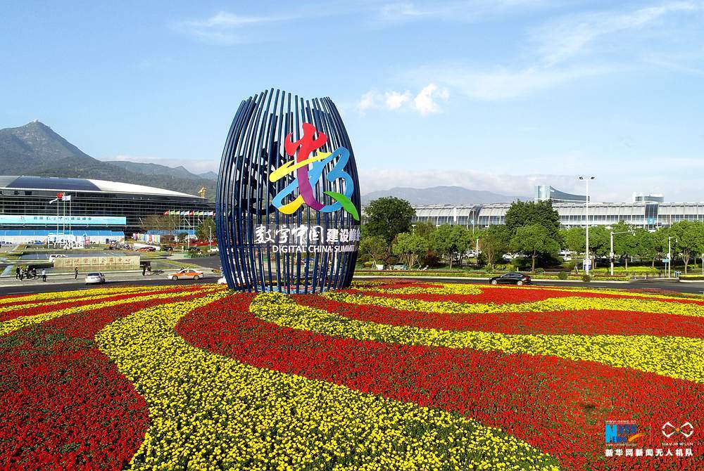 四月的福州满城花开,美如画卷。闽江之畔的福州海峡国际会展中心处处繁花似锦,树木葱郁,绿草如茵。4月22日至24日,首届数字中国建设峰会在这里举行,春天的福州盛装迎接八方宾客的到来。图为19日,福州海峡国际会展中心外的花坛在夕阳中显得格外美丽,簇拥着首届数字中国建设峰会会徽(无人机拍摄)。新华网涂天翔摄 |