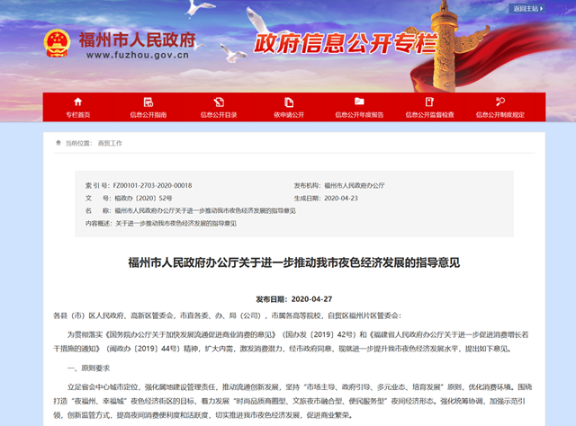 27日,福州市人民政府网发布《福州市人民政府办公厅关于进一步推动我市夜色经济发展的指导意见》。具体内容如下: 福州市人民政府办公厅关于进一步推动我市夜色经济发展的指导意见 各县(市)区人民政府、高新区管委会,市直各委、办、局(公司),市属各高等院校,自贸区福州片区管委会: 为贯彻落实《国务院办公厅关于加快发展流通促进商业消费的意见》(国办发〔2019〕42号)和《福建省人民政府办公厅关于进一步促进消费增长若干措施的通知》(闽政办〔2019〕44号)精神,扩大内需,激发消费潜力,经市政府同意,现就进一步提升我市夜色经济发展水平,提出如下意见。 一、原则要求 立足省会中心城市定位,强化属地建设管理责任,推动流通创新发展,坚持“市场主导、政府引导、多元业态、培育发展”原则,优化消费环境。围绕打造“夜福州、幸福城”夜色经济街区的目标,着力发展“时尚品质商圈型、文旅夜市融合型、便民服务型”夜间经济形态。强化统筹协调,加强示范引领,创新监管方式,提高夜间消费便利度和活跃度,切实推进我市夜色经济发展,促进商业繁荣。 二、推动提升重点 (一)丰富经营业态,提升消费体验 1.引进更多国际、国内知名品牌的旗舰店等,提升水平,打造高品质时尚夜间商圈。〔责任单位:各县(市)区政府、市商务局、市文投集团〕 2.鼓励主要商圈和特色商业街与文化、旅游、体育、阅览、演艺、休闲等紧密结合,不断丰富夜间消费市场;积极为消费者开设特色夜市,提供音乐茶座、酒吧、游艺、演艺、体育赛事、运动、电竞、影视、旅游、温泉、健康养生、24小时阅读空间等多元化特色夜间文体消费产品。优化文化体育及旅游场所的夜间餐饮、购物服务。〔责任单位:各县(市)区政府、市商务局、市文旅局、市体育局、市文投集团〕 3.打造夜间文旅消费集聚区,持续推进“夜游闽江”“夜游晋安河”项目发展,着力提升三坊七巷、上下杭两大历史文化街区知名度,深入挖掘省体、奥体、海峡文化艺术中心三大场馆夜间文艺体育消费新热点。〔责任单位:各县(市)区政府、市文旅局、市体育局、市名城委、市文投集团〕 (二)创建示范街区,打造夜间地标 1.各县(市)区要引导夜色经济街区树立精品意识和品牌意识,着力打造品牌夜色经济街区,培育形成各具特色的夜间地标。〔责任单位:各县(市)区政府、市商务局〕 2.由各县(市)区政府负责,在2020年内各自打造一条夜色经济示范街区。〔责任单位:各县(市)区政府、市商务局〕 (三)充分挖掘市场,活跃夜间经济 1.坚持政府引导、政策推动和市场运作相结合,开展多形式的主题活动,充分挖掘消费市场,不断提高夜色经济活跃度;开展线上线下融合宣传,持续“炒”热商业氛围。〔责任单位:各县(市)区政府、市商务局、市文旅局、福州报业传媒公司、福州广播电视台〕 2.通过举办美食节、购物节、啤酒节等活动,集聚人气吸引客流,创新夜色经济发展模式。鼓励有条件的旅游景区在保证安全、避免扰民的情况下开展夜间游览服务。〔责任单位:各县(市)区政府、市文旅局、市商务局〕 3.充分利用报刊、广播、电视、网络等媒体,地铁站、公交车站、公园、广场等城市公共空间,宣传推介我市夜色经济;提升广大市民的关注度、参与度,引导消费者转变消费观念和习惯,提升夜间消费比重。〔责任单位:各县(市)区政府、市商务局、市文旅局、福州报业传媒公司、福州广播电视台〕 (四)夜间便民服务,促进深夜消费 1.在人口居住密集区,支持品牌连锁企业扩大24小时便利店、24小时药店的布局,为市民提供贴心的夜间服务。〔责任单位:各县(市)区政府、市商务局〕 2.鼓励商户延长营业时间,夜色经济街区内的博物馆、图书馆等公共文化场所要适当延长开放时间,利用室内步行街等场地,开设夜卖一条街、节日商品专区专柜等夜间促销活动。〔责任单位:各县(市)区政府、市商务局、市文旅局〕 3.打造环境友好、放心安全、具有工匠精神的“深夜食堂”。〔责任单位:各县(市)区政府、市商务局〕 三、推进措施 (一)加强统筹协调 1.理顺夜色经济街区的管理体制,进一步明确责任,落实协调推进机制,消除多头管理。建立福州市推进夜色经济发展工作领导小组成员单位联席会议制度,定期协调推进全市夜色经济街区建设管理工作,联席会议办公室设在市商务局。〔责任单位:市商务局、各县(市)区政府、联席会议各成员单位〕 2.强化属地责任,各县(市)区相应建立联席会议制度,由政府主要领导担任“夜色经济首席执行官”,统筹协调夜色经济发展;由各相关街镇主要领导或相关街区管委会负责人担任“夜间街长”,对夜色经济街区内商家进行协调管理。〔责任单位:各县(市)区政府〕 (二)加大政策扶持 1.统筹安排我市夜色经济街区发展专项财政扶持资金,按照相关资金管理办法和使用指南的规定,支持夜色经济发展;鼓励各县(市)区政府立足实际,发挥财政资金作用,支持夜色经济街区的发展项目。〔责任单位:各县(市)区政府、市财政局、联席会议各成员单位〕 2.加快限上规上商贸服务业企业的培育发展,做大做强夜色经济。鼓励“老字号”企业入驻夜色经济街区。落实省政府进一步促进消费增长低谷电价措施,鼓励商场、商圈延时经营。〔责任单位:各县(市)区政府、市发改委、市商务局、市市场监管