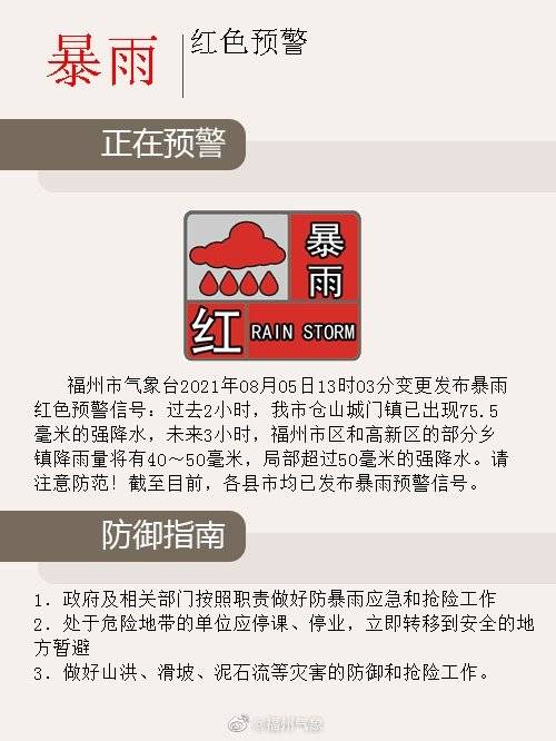 福州市区多地近1小时雨量超过50毫米。福州城区停课指引生效!小伙伴们千万注意安全!