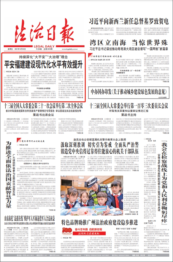 法治日报头条关注:平安福建建设现代化水平有效提升