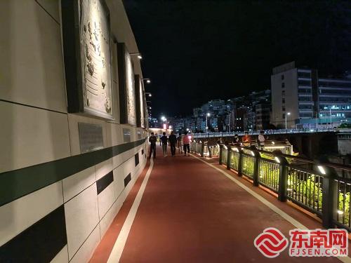 东南网6月23日讯(本网记者 陈巧玲)6月23日,记者探访闽清南山片区县城更新样板项目建设进展情况。 傍晚时分,记者品尝完闽清番鸭煮粉干后信步来到刚刚建成投用的梅溪滨水休闲步道(台山桥头至赖下桥段),只见已有一些群众在此休闲散步、运动,其乐融融。特别是吴孟超院士生平事迹瓷画长廊和闽清县花梅花造型的旋转步梯别具特色,吸引了不少群众在这些节点逗留、游览。