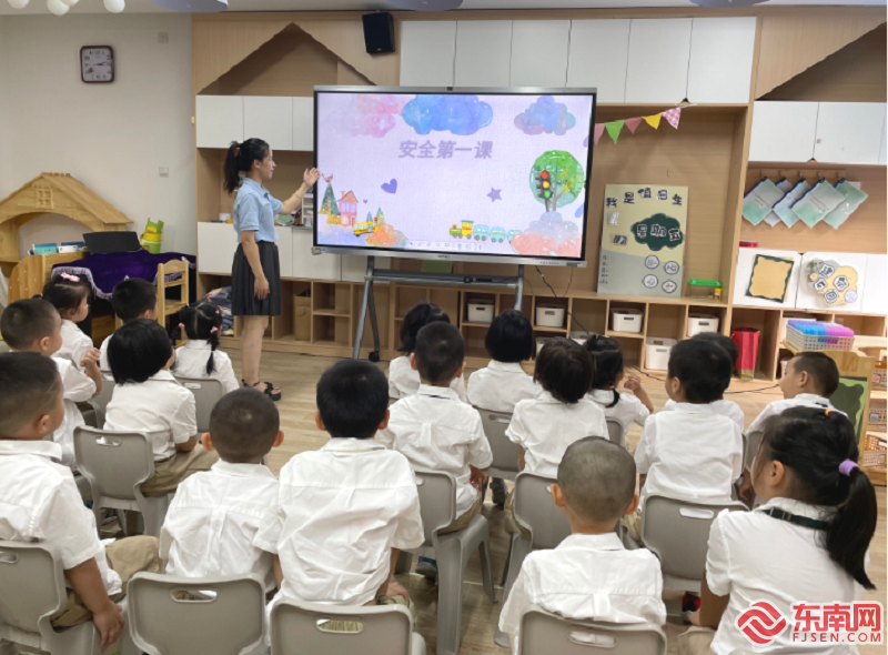 “开学第一课”主题活动。石井幼儿园供图 随后,各班级还开展了形式多样、内容丰富的“开学第一课”主题活动。老师借助故事、视频、图片、事例等形式向幼儿们强调消防安全、防溺水、食品安全等相关知识,强化幼儿们的安全意识。
