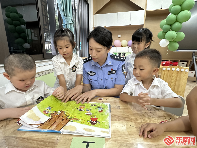 民警通过绘本向幼儿们讲解安全知识。石井幼儿园供图 为增强幼儿安全意识、提高自我保护能力,开学第一天,石井幼儿园特别邀请了来自东街派出所的法治辅导员民警吕鑫垚为幼儿们进行法治安全主题教育。吕鑫垚用生动活泼的语言向幼儿们普及交通出行、防拐防骗等安全知识。现场,幼儿们和警察阿姨热情互动、积极发言,安全防护的种子在幼儿们心间生根发芽。
