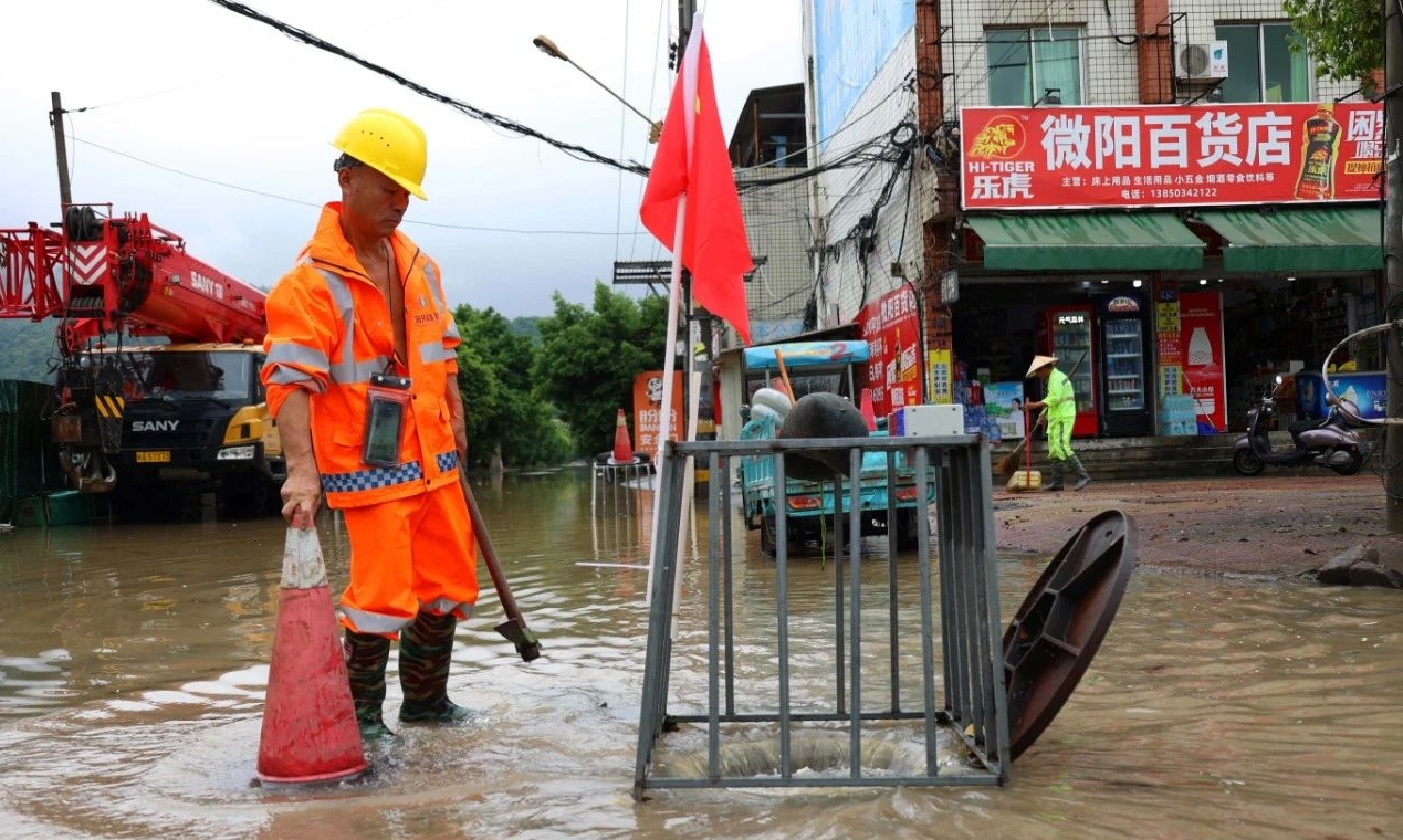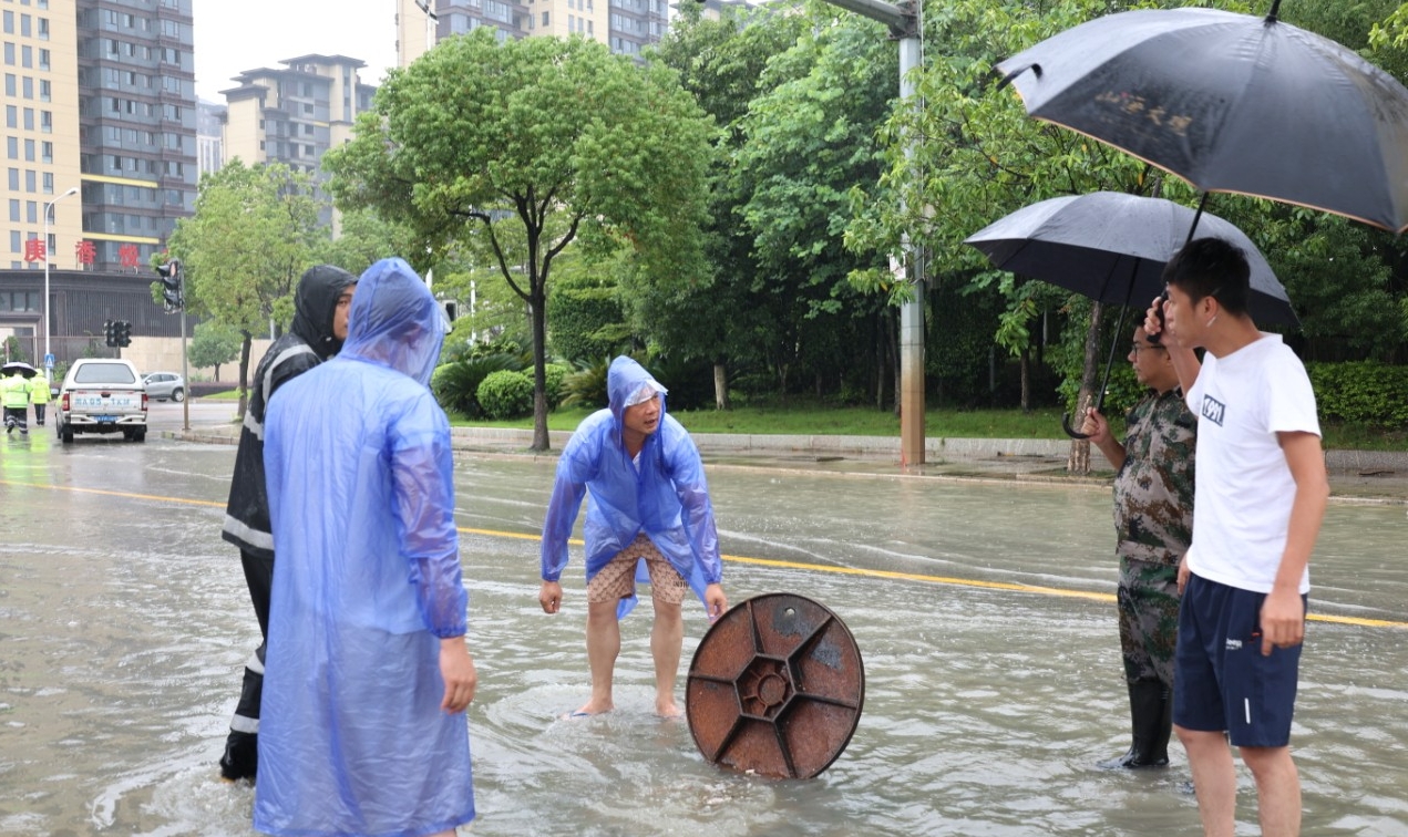 打开雨水篦、窨井盖,徒手清掏树叶、垃圾杂物,加快排水;安排专人值守,设置三脚架提醒过往行人车辆注意安全……面对疾风劲雨,连江对城区33个易涝点位,按照“一个点位、一面旗帜、一支队伍、一套设备”的措施,时刻保持抢险力量在激活状态,确保城区内涝点有效排放。