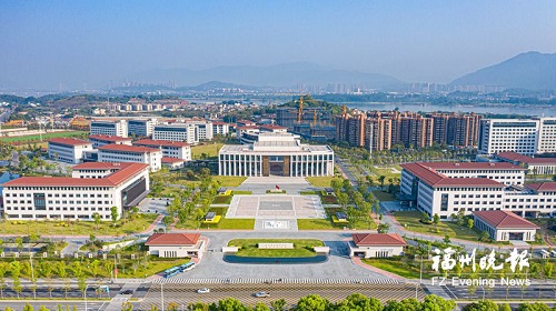 中共福建省委党校(福建行政学院)新校区。福建二建集团供图 中共福建省委党校(福建行政学院)新校区建设项目,由福建省二建建设集团有限公司承建,以“一心两轴五区”为布局,33栋大小建筑星罗棋布,镜湖和莲池水色旖旎,建筑与风光共同铺展成一幅红色山水画卷。