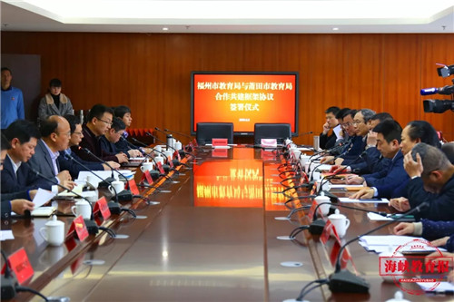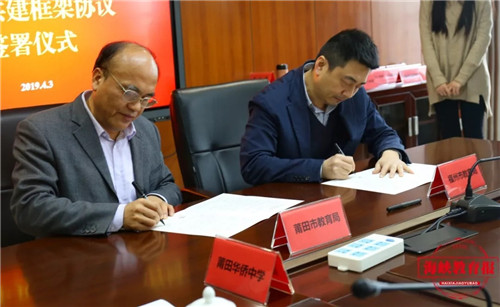 仪式上,莆田市教育局局长卓金贤、福州市教育局局长唐希正式签署两地市级层面合作框架协议。福州第三中学和莆田第一中学等16所学校两两之间签署姊妹合作协议,福州第三中学和莆田第二十四中学、莆田第一中学和福州第十一中学等32所学校两两之间签署帮扶共建协议。