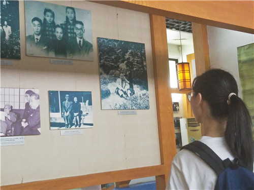实践队员在老照片前认真了解冰心的事迹。吴萌萌摄