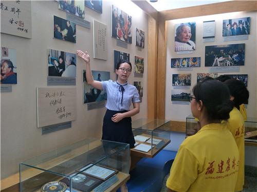 实践队员们认真倾听讲解员讲述冰心的故事。李宇欣 摄