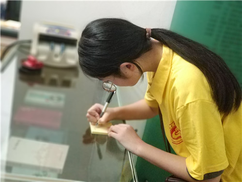 实践队员参观文学馆后抑制不住内心对冰心的崇敬为她写下留言。郭键鹏摄