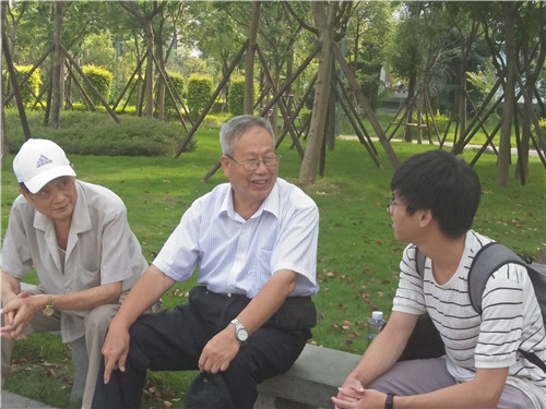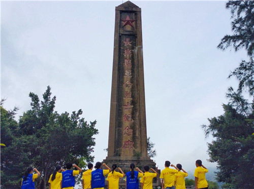 实践队员在冰心文学馆内采访当地居民,与他们一起感受冰心的爱国情怀。吴萌萌摄 瞻仰革命烈士纪念碑,忆昔抚今 当天下午,实践队员们跨过塔坪山的一层层阶梯,爬上倾斜的山路,终于登上塔坪山,高高屹立着的长乐县革命烈士纪念碑展现在眼前。用花岗石和水泥砂浆砌成的碑体,经历了六十多年的风吹雨打,已经有些磨损,但它依然严肃地屹立着,顶端的五角星,红色依旧。历史打磨的纪念碑上,深深地雕刻着爱国之士的名字,让人们永远记住他们壮举。 陈亨源,将爱国情怀注入为国家为人民的斗争中去,他是抗日战争和解放战争期间中国共产党闽中地区领导人之一,创建了长乐抗日游击队,他将自己的一生,奉献给了祖国。革命烈士纪念碑纪念的其中一位英雄,就有着他的名字。 革命烈士纪念碑庄严而肃穆,队员们仰起头,瞻望纪念碑上的五角星和文字,内心无比震撼。通过瞻仰它,志愿者们深刻认识到,革命烈士在这里洒下英雄的汗水,灌溉脚下这片土地。他们的故事,被人们传承,被人们铭记。即使在日益强大的新中国,也应该让他们活在历史的记忆中,要继续传承爱国情怀,也要居安思危,珍惜现在的幸福生活。