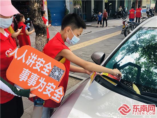 亲子志愿者对违章停放的车辆给予提醒。(潘靖 摄)