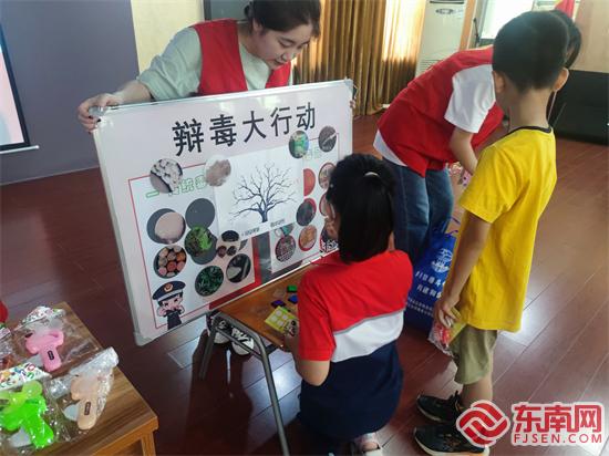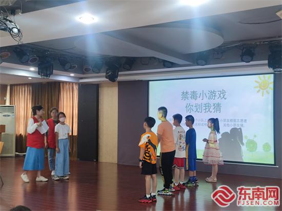 禁毒宣传从少年抓起,禁毒战争要常打不懈。活动现场,来自集美大学爱心社的禁毒志愿者以禁毒小游戏为开端,为青少年带来一堂有趣又生动的禁毒宣讲课,借此向青少年宣传毒品知识,并通过视频和禁毒绘本阅读等形式,告诫他们要提防和拒绝陌生人给的“饮料”和“小食品”,不断增强自我防范意识。