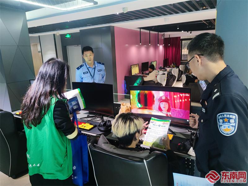 社工、民警进网吧开展禁毒宣传(集美区禁毒协会供图)