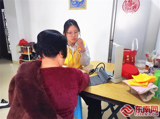 洗菜、切菜、打扫卫生……当天上午,三社村五社项目联动厦门医学院健康小天使志愿服务队志愿者入户慰问高龄独居老人。志愿者分工明确,有条不紊地准备爱心午餐,与两位奶奶围桌而坐。会闽南语的大学生还发挥语言优势,带着同伴向奶奶了解他们的过往生活趣事,场面温馨。此外,医学专业青年大学生志愿者还为老人带来了包括血压测量、肩颈推拿、保养建议,血压管理知识等健康服务。