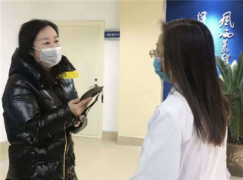 吉林日报社记者毕雪(左一)在吉林大学第一医院采访。 2月2日,成立特别报道小组,建立多个采访梯队,进一步下沉到街道社区、乡镇村屯,同时加大科普宣传和依法战“疫”报道力度。以吉林上下科学防控、防疫民生两手抓、全力保障物资供应、社区乡镇阻击疫情为报道重点,聚焦各地各部门以实际行动贯彻落实党中央、吉林省委省政府疫情防控工作部署的各项举措。