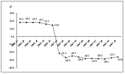 2008年7月—2009年10月出口变动率(当年累计)