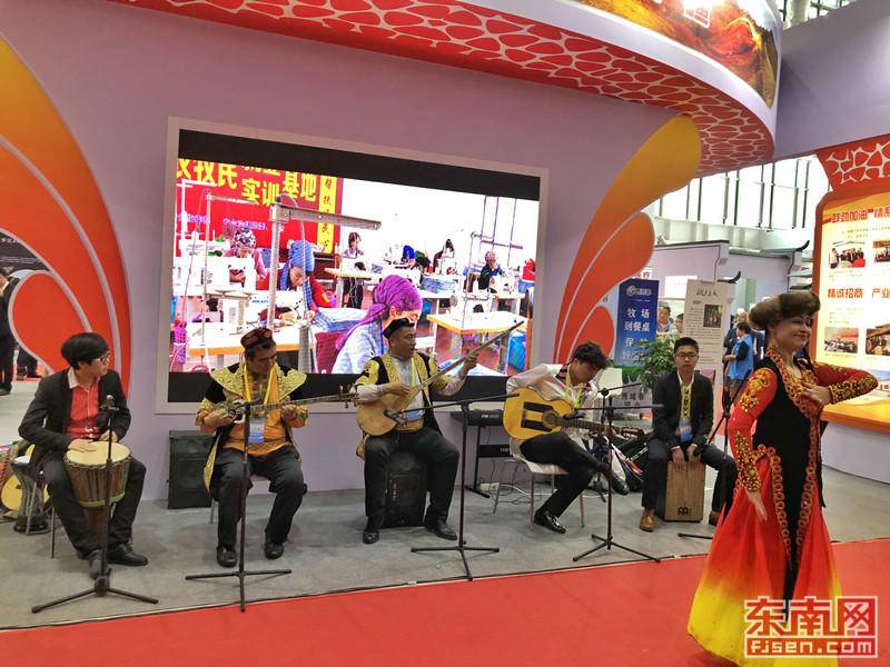 五叶草乐队的表演极具民族特色 东南网龙岩11月8日讯(记者 刘必然 黄筱菁)飞扬的民族舞蹈,配合吉他、手鼓、坦布尔、都塔尔的弹奏,流露出浓浓的西域风情。11月8日,新疆呼图壁特色馆首次亮相第九届海峡两岸机械产业博览会,来自新疆的五叶草乐队的表演吸引了大量游客驻足观看。 据悉,新疆昌吉州呼图壁县经过龙岩市近十年援建,社会各项事业得到了飞速发展,为了充分展现新疆特有地域和民族特色,展现援疆成果,应龙岩市人民政府邀请,在本届展会设立新疆呼图壁特色馆。 |