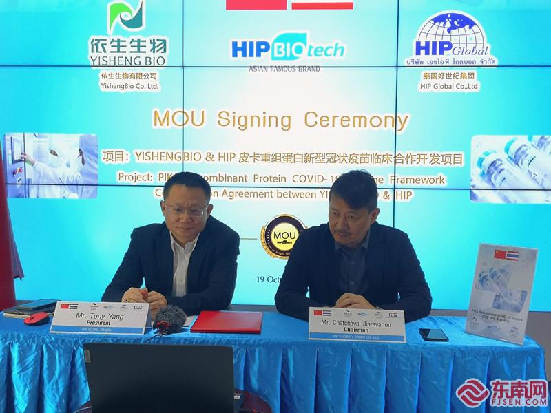 东南网10月22日讯(本网记者王文青 通讯员 蔡品)10月19日,中国依生生物制药有限公司与泰国好世纪集团分别在中国北京、沈阳和泰国曼谷三地举行皮卡(PIKA)重组蛋白新冠疫苗泰国市场战略合作签约仪式。依生生物独家委托并授权泰国好世纪集团在泰国组织并开展该疫苗的临床及本地化生产销售工作。