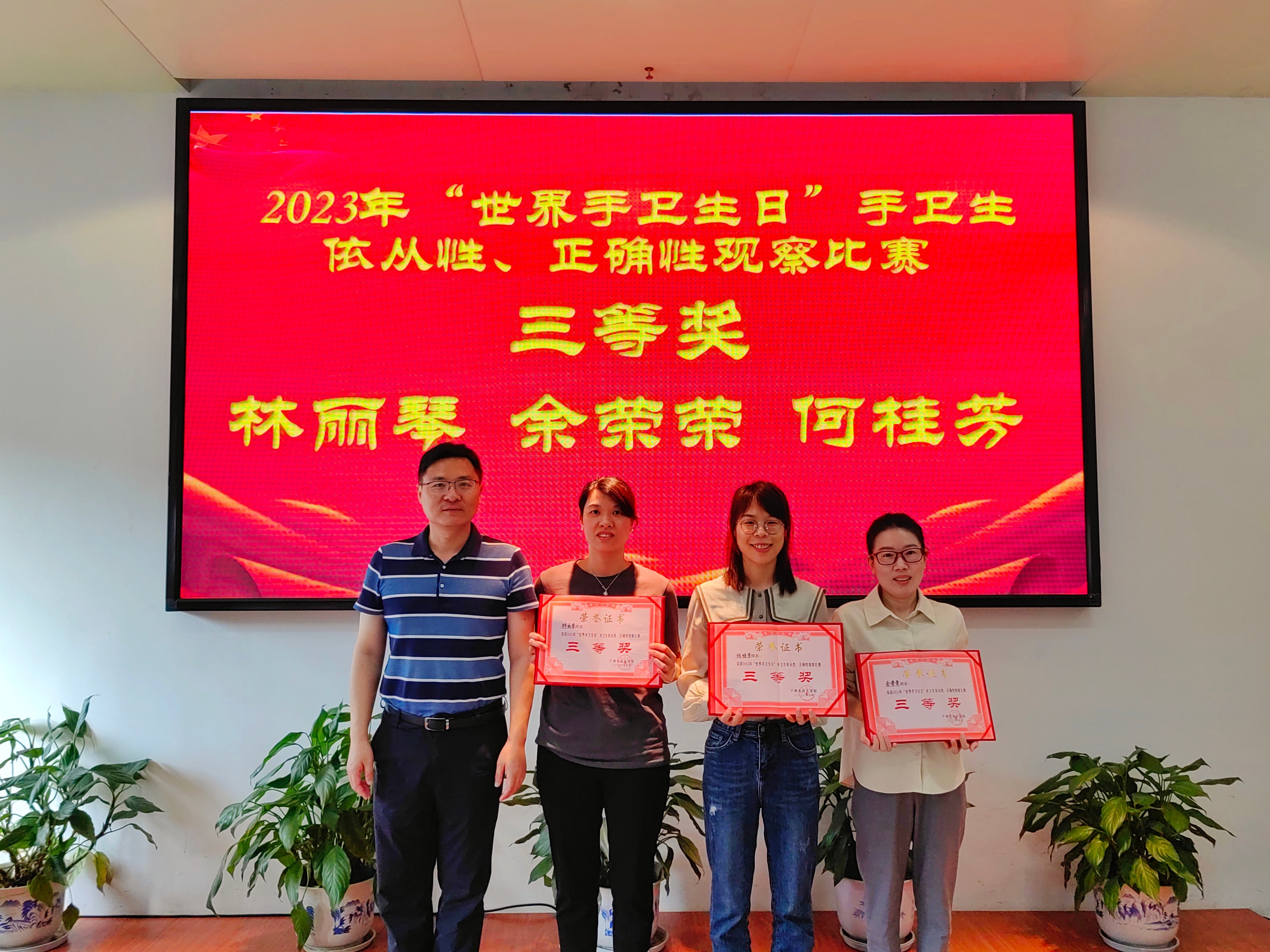 活动期间,院感科根据《医务人员手卫生规范》要求,结合临床工作,联合宣教科拍摄门诊接诊、医疗查房、换药、婴儿沐浴、静脉输液、术后护理、晨间护理、终末消毒等八个手卫生情景剧。院感科组织全院近百名手卫生观察员观看情景剧,通过比赛形式从情景剧中查找手卫生错误环节,比赛结束后,院感专家针对八个手卫生情景剧中的错误环节逐一进行讲解。最终根据成绩高低评出一、二、三等奖,分别是急诊儿科龚华珠荣获一等奖;儿科林恕云和陈赛玉荣获二等奖;超声医学科林丽琴、小儿骨科、创伤骨科余荣荣、心电图室何桂芳荣获三等奖。