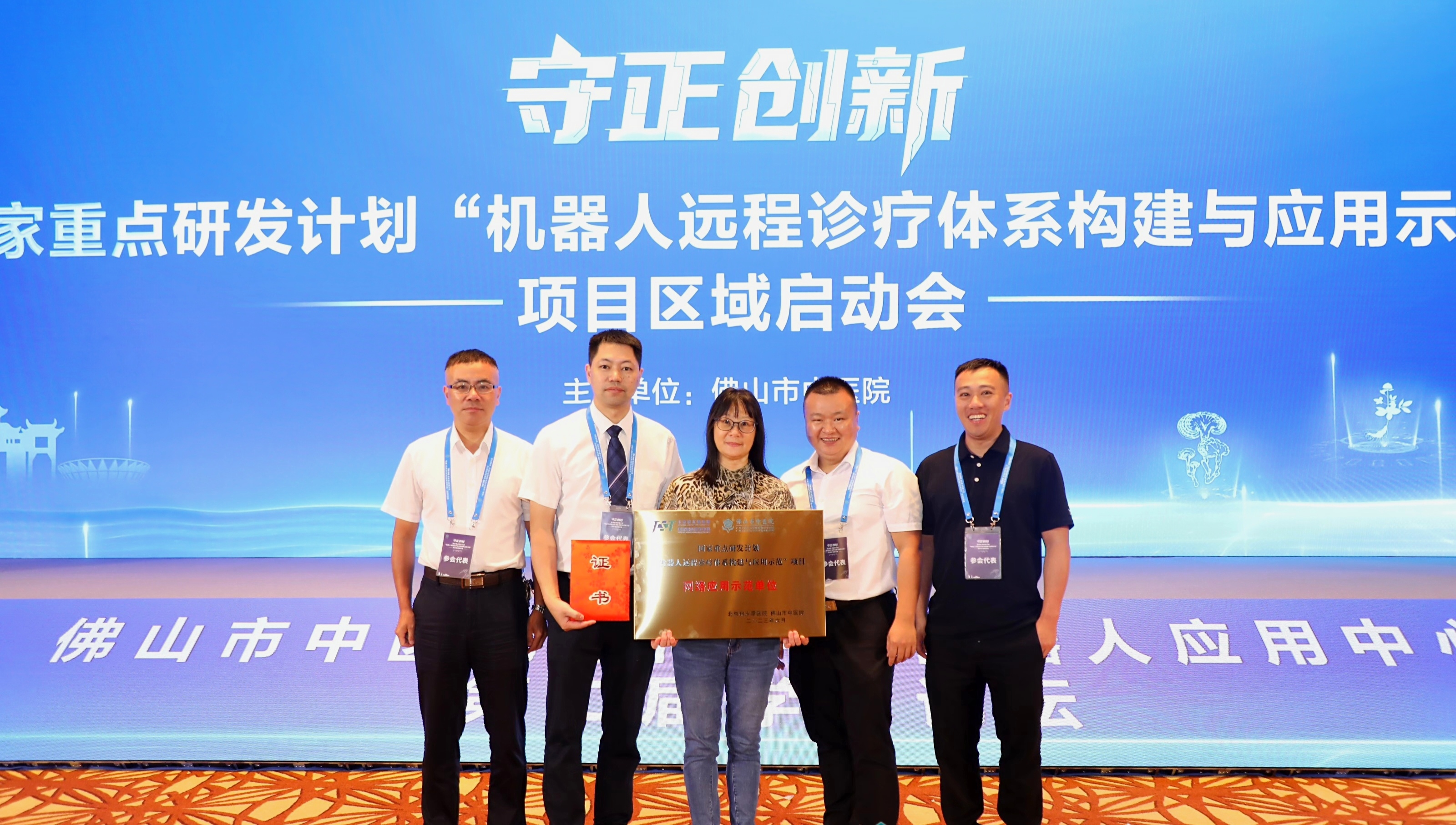 6月24日,由北京积水潭医院牵头,佛山市中医院承办的“十四五”国家重点研发计划 “机器人远程诊疗体系构建与应用示范”项目区域启动会在广东省佛山市召开。会议期间对联盟单位进行授牌,闽东医院作为装机联盟单位获邀参会,医务部副主任吴锦清代表医院接牌。据悉,本次联盟单位共三十一家,覆盖中南区域,福建省仅有两家医院获授牌。