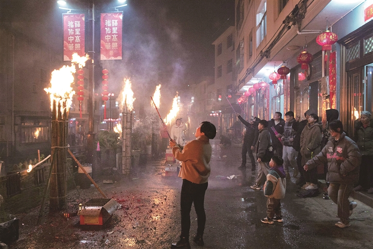近日,一年一度的火把节在柘荣县黄柏乡黄柏村举行。 当天,男女老幼围在各自家门前的“火树”旁,燃放烟花爆竹。夜空流光溢彩,地上灯火通明,人们载歌载舞、互相祝福、欢乐迎春,活动现场年味十足。据悉,火把节又称“爆火树”,宋初以来,便是黄柏所独有的特色传统节日,传承千年,是一张靓丽的民俗文化名片,象征着黄柏淳朴的民风、勤劳勇敢的本色,世代薪火相传。 近年来,黄柏乡致力于传承与发展黄柏特有优秀民俗文化,通过拍摄微电影、举办多种文化惠民活动等方式,打造在外乡贤、游子的乡愁经济,融合“旅游+”的叠加效益,推动黄柏乡农文旅融合发展,助力实现乡村振兴。(闽东日报 游爱芳 文/图) |
