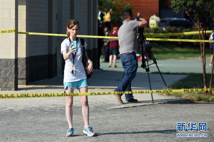 6月14日,在美国弗吉尼亚州一个棒球训练场,记者在枪击现场附近用手机直播。 当地时间14日晨,美国首都华盛顿附近的弗吉尼亚州一个棒球训练场突然传出枪声,包括国会众议院多数党(共和党)党鞭史蒂夫·斯卡利斯在内的数人受伤,目前枪手已经落网。 |