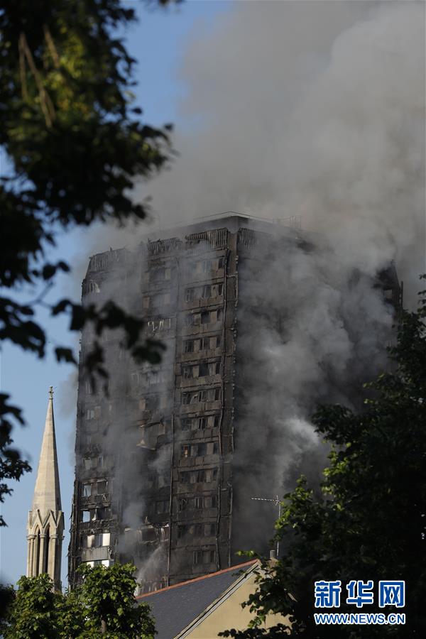 这是6月14日在英国伦敦拍摄的发生火灾的大楼。 英国伦敦西部一幢27层建筑物14日凌晨发生火灾,目前救援方面已确认至少30人受伤。 新华社记者韩岩摄 |