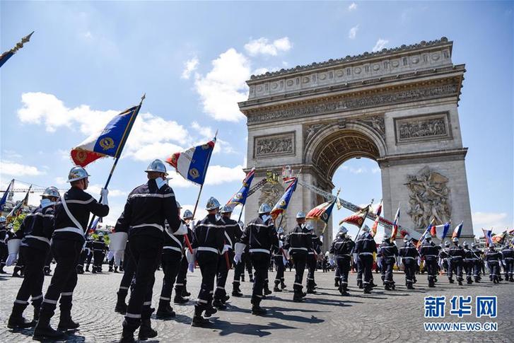 6月23日,在法国巴黎,消防队员在香榭丽舍大街列队向凯旋门行进。今年的6月24日是法国国家消防队员日,全国于23日和24日举行各种纪念活动。新华社记者 陈益宸 摄 |