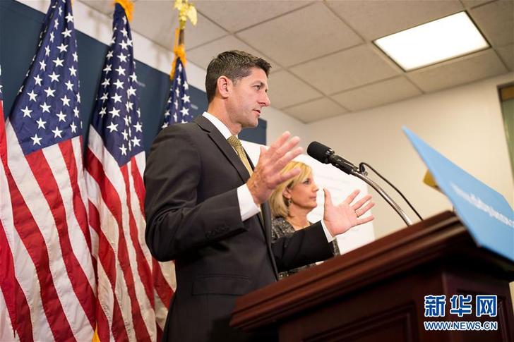 7月25日,在美国华盛顿国会山,美国国会众议院议长瑞安出席记者会。美国国会众议院25日表决通过了一项针对俄罗斯、伊朗和朝鲜三国的制裁议案。众议院当天以419票赞成、3票反对的表决结果通过这项议案。根据该议案,美国将以俄罗斯涉嫌干涉美国2016年总统选举和乌克兰危机等为由,追加对俄相关个人和实体的经济制裁;美国将以发展弹道导弹项目等为由,对伊朗和朝鲜实施制裁。根据相关流程规定,该议案将交由国会参议院进行审议。新华社发(沈霆摄) |