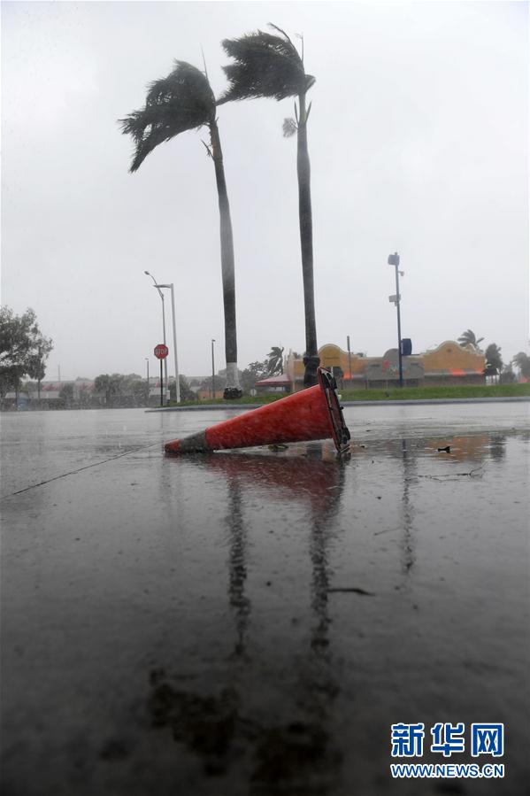 9月10日,在美国佛罗里达州迈阿密,棕榈树在暴风雨中摇曳。飓风“艾尔玛”于当地时间10日上午登陆美国佛罗里达群岛,受其影响,佛州东部城市迈阿密当日出现强风暴雨天气。新华社记者殷博古摄 |