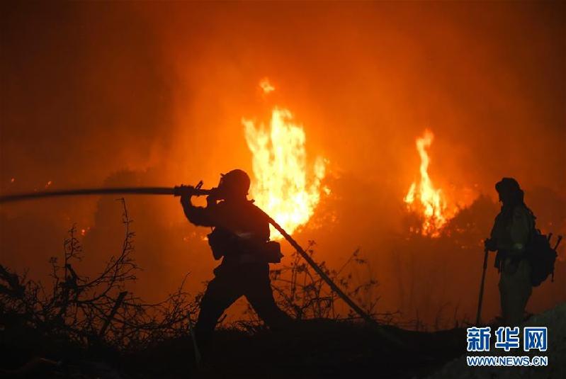 12月5日,消防员在美国加利福尼亚州南部文图拉县圣保拉的林火现场灭火。美国加利福尼亚州文图拉县4日突发林火,目前过火面积超过180平方公里,已造成至少一人死亡,约27000人被迫撤离。新华社发(赵汉荣摄) |