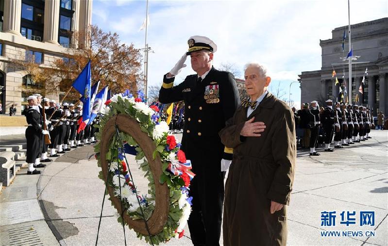 12月7日,在美国华盛顿的海军纪念广场,罗伯特·考夫曼(右)参加珍珠港事件76周年纪念仪式。罗伯特·考夫曼是曾在“密苏里”号战舰上见证日本投降仪式的美国老兵。当日,美国海军举行仪式纪念珍珠港事件76周年。1941年12月7日,日军偷袭夏威夷美国海军基地珍珠港,摧毁、重创多艘美国军舰和上百架飞机。珍珠港偷袭导致美方大约2400人死亡。随后美国对日宣战,揭开太平洋战争的序幕。新华社记者殷博古摄 |
