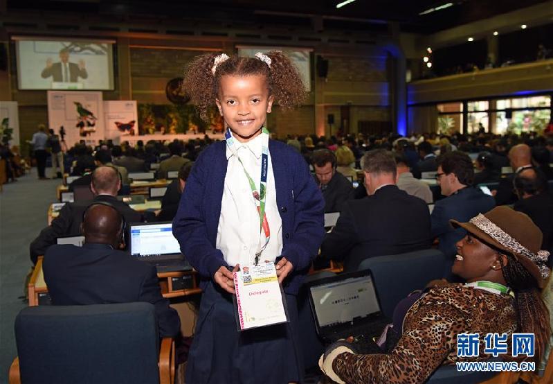 12月4日,在肯尼亚首都内罗毕,肯尼亚女孩埃利安妮·吉萨埃出席第三届联合国环境大会。肯尼亚首都内罗毕的联合国环境规划署总部主会场,在一群身着正装的官员代表中间,一个身穿白衬衫蓝裙子校服、佩戴代表证的小女孩格外引人注意。这是第三届联合国环境大会的开幕式。肯尼亚女孩埃利安妮·吉萨埃是正式受邀的代表之一。新华社记者陈诚摄 |