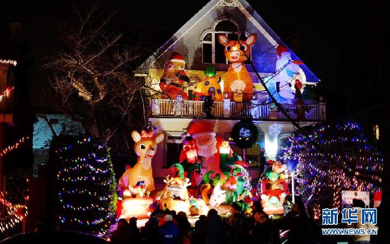 12月16日晚,人们在美国纽约布鲁克林“圣诞小镇”游览。 美国纽约布鲁克林“圣诞小镇”位于布鲁克林戴克高地。每逢圣诞临近,这里的家家户户摆放出梦幻精美的圣诞灯饰,把街区打造成美轮美奂的童话世界。 新华社记者秦朗摄 |