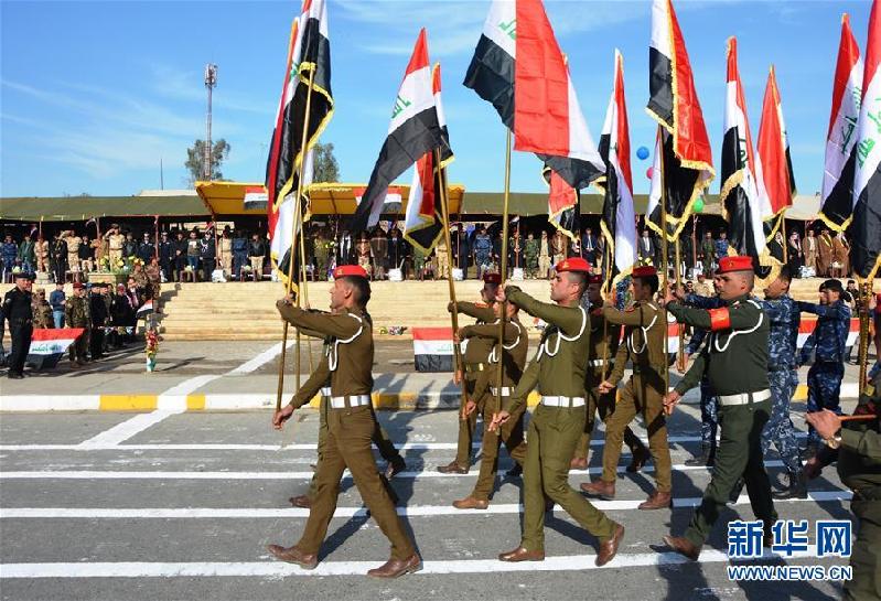 12月14日,伊拉克士兵在摩苏尔参加阅兵式。 伊拉克军方14日在摩苏尔举行阅兵式,庆祝打击极端组织“伊斯兰国”的战争取得胜利。摩苏尔是伊拉克第二大城市,曾是“伊斯兰国”在伊境内的大本营。 新华社发(哈利勒·达伍德摄) |