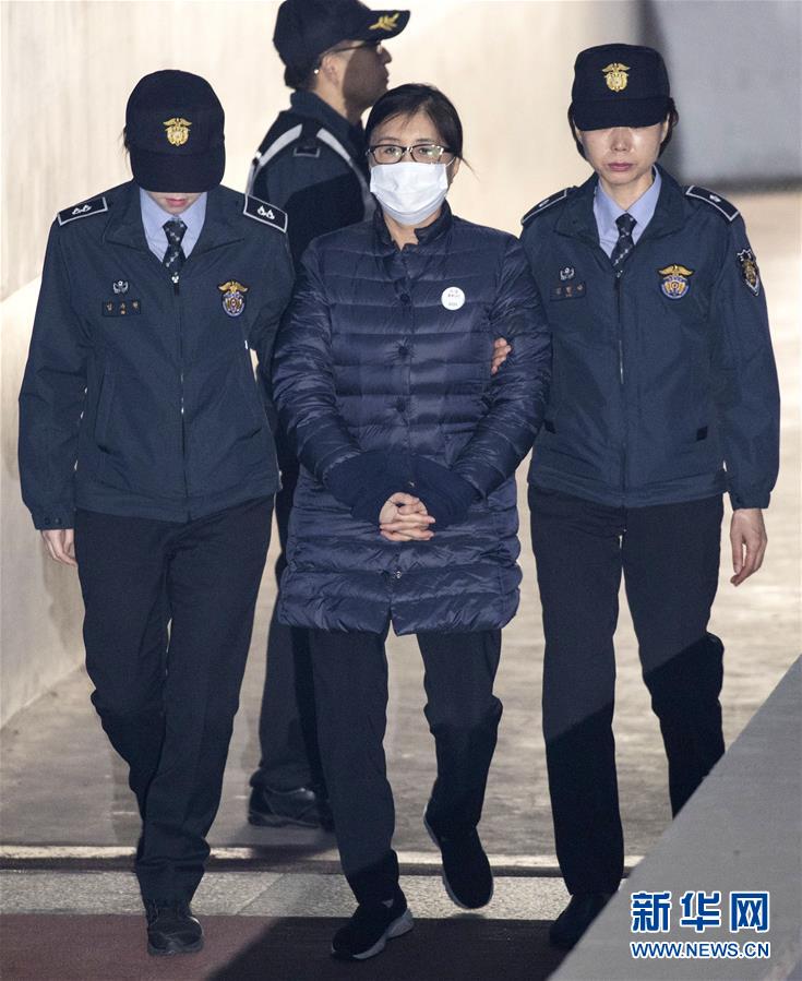 12月14日,“亲信干政”事件主角崔顺实(中)被押往韩国首尔中央地方法院受审。 韩国检方14日在首尔中央地方法院就“亲信干政”事件主角崔顺实涉嫌滥用权力等案件提请法庭判处其25年有期徒刑。此外,当天检方还提请法院判处涉嫌行贿的乐天集团会长辛东彬4年有期徒刑。 新华社发(李相浩 摄) |