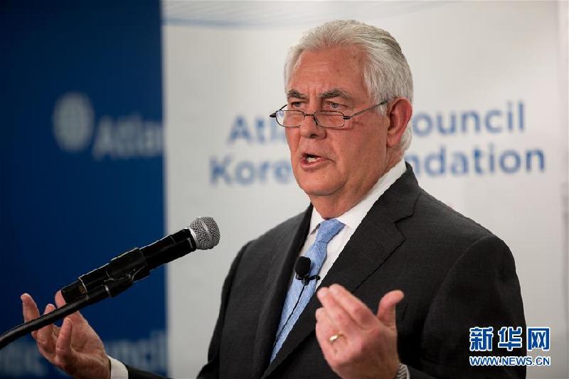 12月12日,美国国务卿蒂勒森在华盛顿出席论坛时发表演讲。蒂勒森12日表示,只要朝鲜愿意重返谈判桌,美国愿与朝鲜展开无条件对话。新华社发(沈霆摄) |