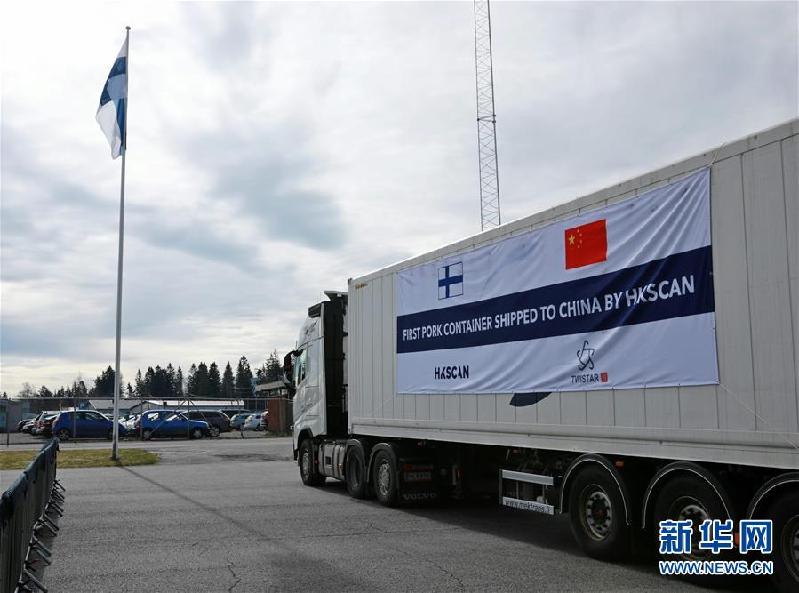 4月23日,一辆装载生猪肉的集装箱货车在芬兰西部城市福尔萨等待出发。 4月23日,芬兰大型肉类食品企业HKScan在其位于芬兰西部城市福尔萨的工厂举行发车典礼,向中国出口第一批25吨生猪肉。这批猪肉将海运至天津港。HKScan是第二家获得向中国出口猪肉许可的芬兰企业。去年,芬兰食品企业Atria已经开始向中国出口猪肉。 新华社记者李骥志摄 |