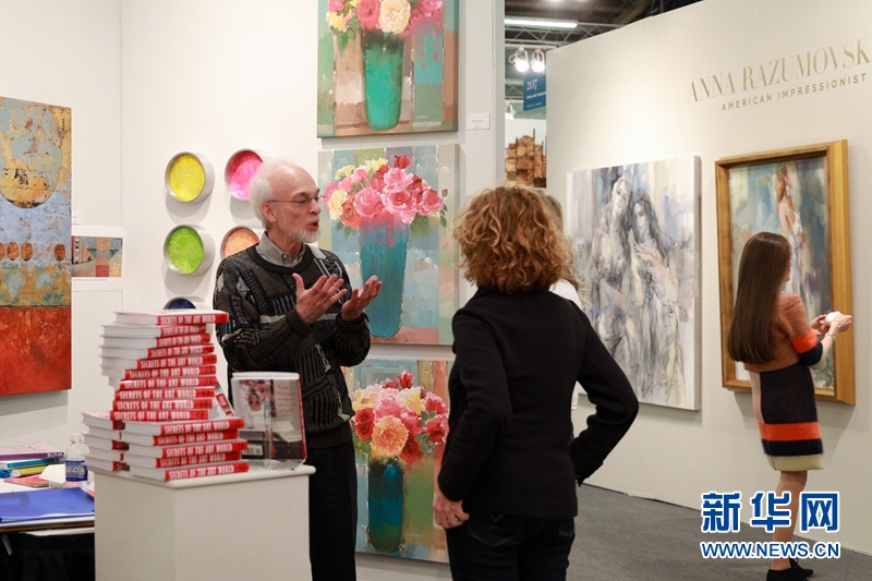 2018年纽约艺术博览会(Artexpo New York)4月19日至22日在纽约曼哈顿举行。来自全球51个国家的400多位艺术家和经销商携逾千幅作品参展,3.5万名艺术品卖家和艺术爱好者观展。纽约艺术博览会始于1979年,是目前世界上艺术品交易量最大的艺术展之一。图为22日,观众和参展商在展会现场进行交流。新华网发 李大玖摄 |