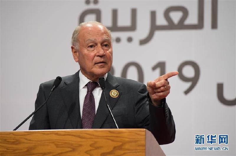 3月31日,在突尼斯首都突尼斯市,阿拉伯国家联盟秘书长盖特在记者招待会上讲话。第30届阿拉伯国家联盟(阿盟)首脑会议当日在突尼斯举行。会议发表声明,坚决反对美国有关耶路撒冷和叙利亚戈兰高地问题的立场。新华社记者孟涛摄 |