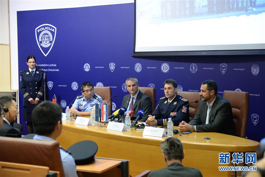 8月14日,中方联巡警队领队薛强(后排右四)、萨格勒布警察局犯罪预防中心主任蒂什马(后排右三)在萨格勒布出席新闻发布会。为期一个月的中国与克罗地亚第二次旅游季警务联合巡逻14日结束。克内政部与旅游部当天专门召开新闻发布会总结联巡成果,盛赞此次联巡“有用”且“成功”。新华社记者 高磊 摄 |