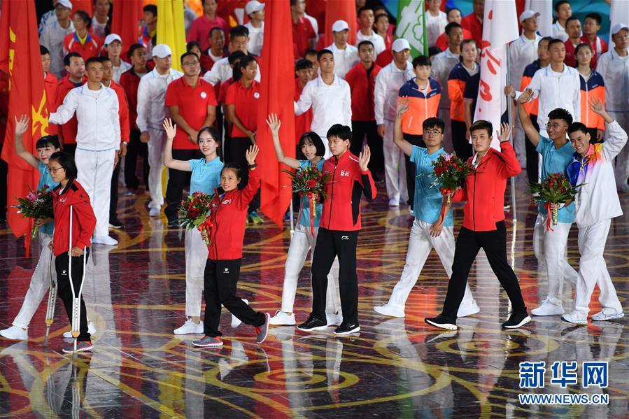 9月1日,运动员代表参加闭幕式。 当日,全国第十届残疾人运动会暨第七届特殊奥林匹克运动会闭幕式在天津体育馆举行。 新华社记者 李然 摄