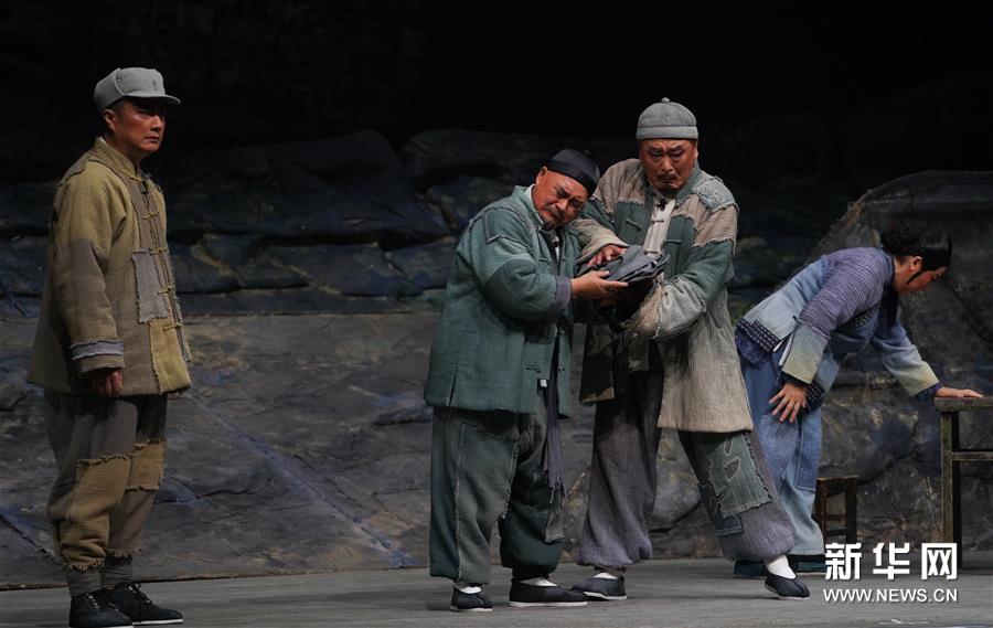 10月10日,演员在徐州梆子现代戏《母亲》的表演中。新华社记者 季春鹏 摄