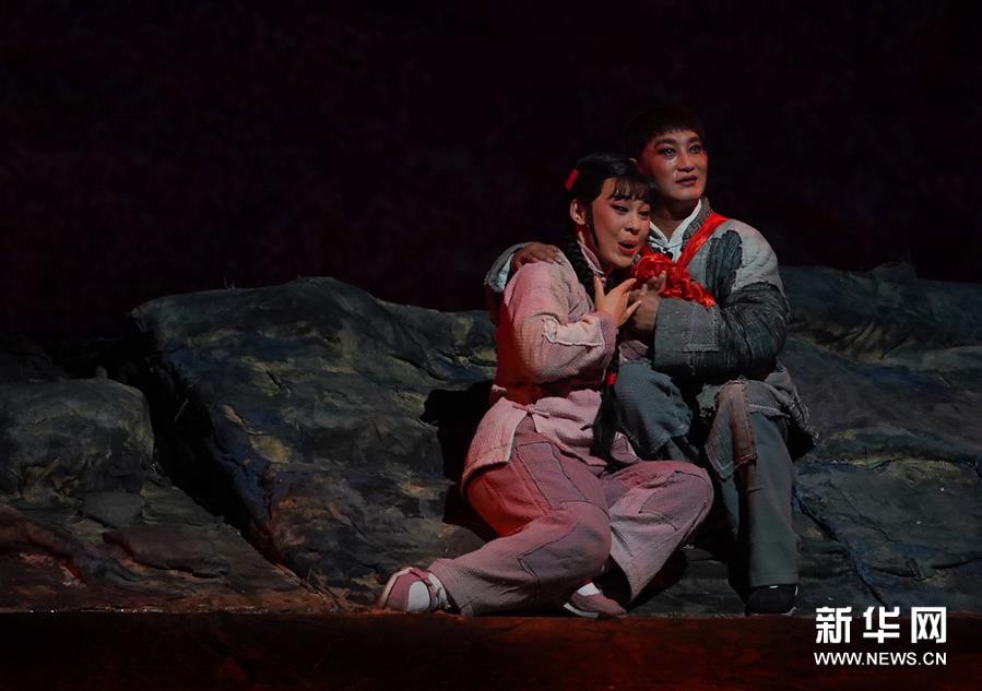 10月10日,演员在徐州梆子现代戏《母亲》的表演中。新华社记者 季春鹏 摄