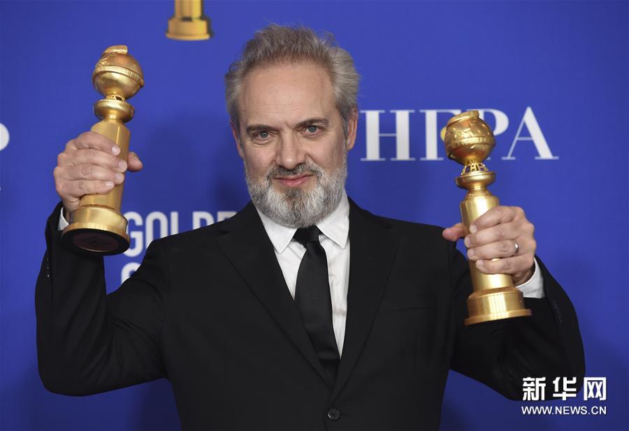 1月5日,在美国洛杉矶,凭借《1917》获得电影类最佳导演的萨姆·门德斯与奖杯合影。新华社/美联