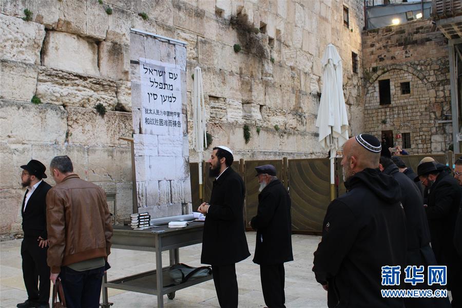 2月16日,在耶路撒冷老城的西墙广场,民众参加为中国祈祷的活动。当日,耶路撒冷民众在西墙广场组织祈祷活动,以表达对中国的祝福,希望新冠肺炎疫情早日结束。新华社记者 尚昊 摄