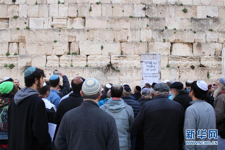 2月16日,在耶路撒冷老城的西墙广场,民众参加为中国祈祷的活动。新华社记者 尚昊 摄