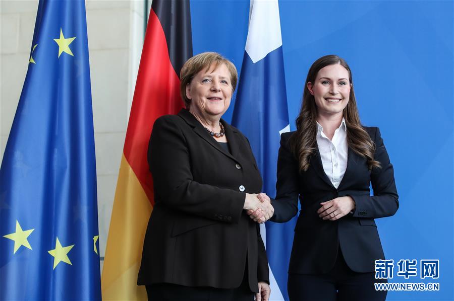 当日,德国总理默克尔在柏林总理府会见来访的芬兰总理桑娜·马林。
