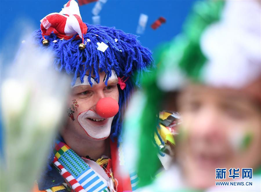 2月24日,在德国科隆,一名男子参加“玫瑰星期一”大游行。新华社记者 逯阳 摄