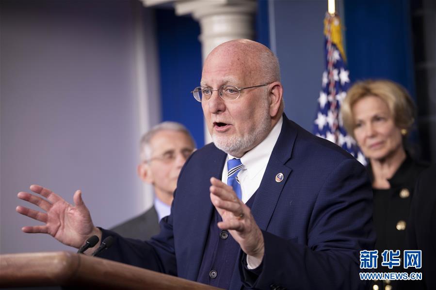3月2日,在美国华盛顿白宫,美国疾病控制和预防中心主任雷德菲尔德出席记者会。 美疾控中心2日发布的数据显示,截至1日美国共有91例确诊或推定阳性病例,有2个死亡病例。